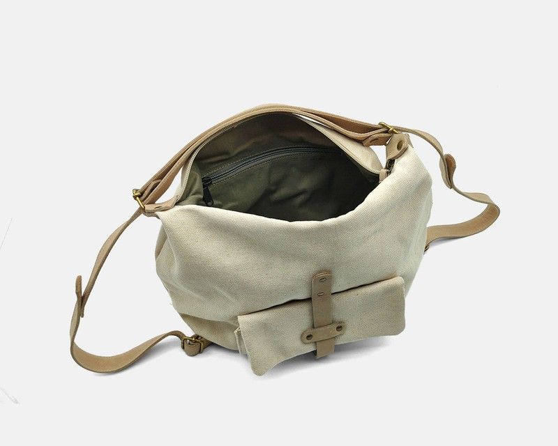 Bolso mochila de tamaño mediano, sus prácticas asas hacen que puedas colgarlo en el hombro o tipo mochila tan solo tirando de las asas. Diseñado con una lona muy ligera y asas de piel a tono con el bolso. Bolsillo frontal exterior con solapa.
