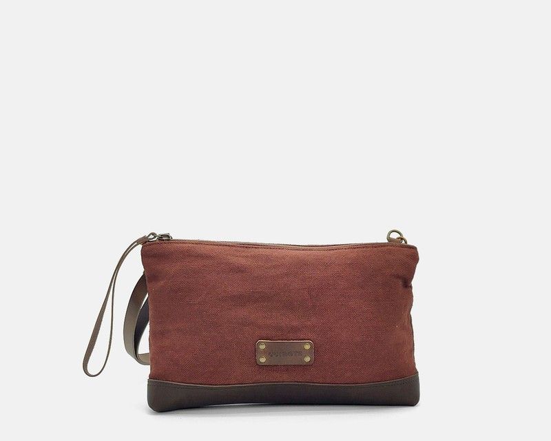 Bolso Wristlet de lino reciclado y piel